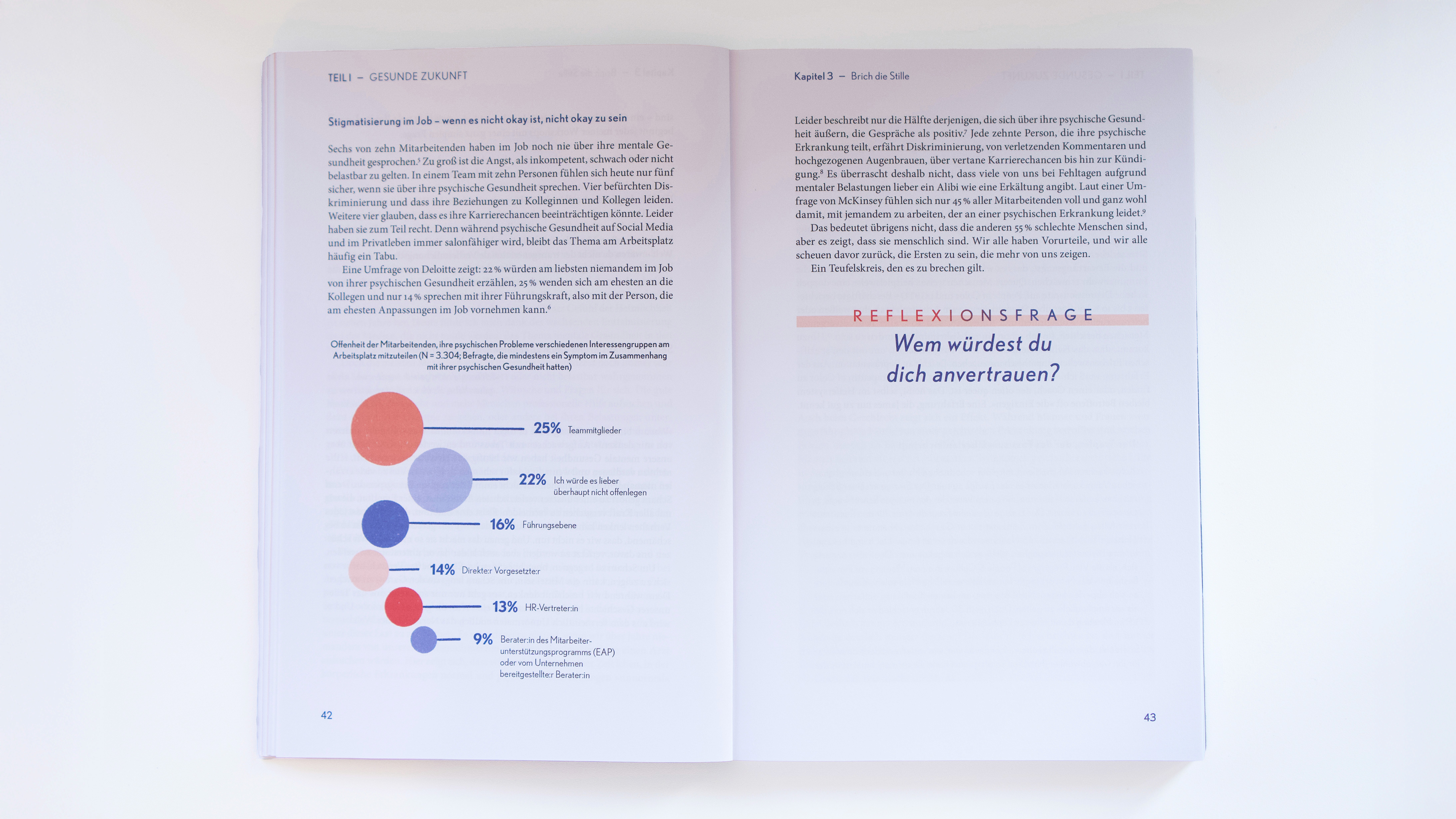 Together with the author, I created a series of infographics that help visualize simple and complex frameworks in the book. I collaborated with the author, publisher, illustrator, and book cover designer on the book’s art direction. Written by Nora Dietrich – a certified psychotherapist with more than ten years of experience, expert, and speaker – the book Mental Health at Work makes a point that work can be demanding but shouldn’t make us mentally ill. It’s a toolkit for how to live mental health in the work environment. Nora is also the founder of Between People, a company that supports Organisations in integrating mental health into their agendas and strategies. The book was published by Vahlen.