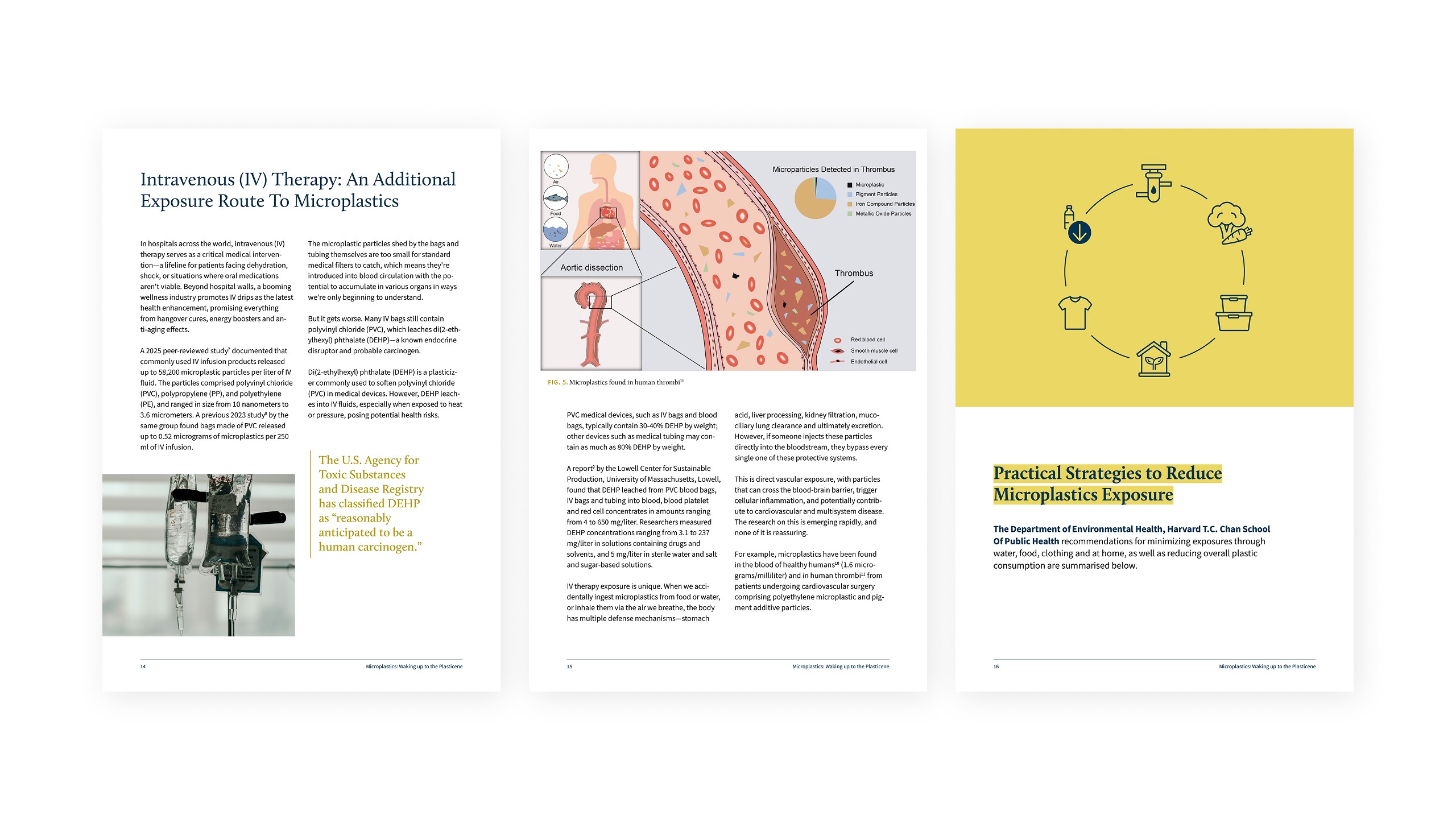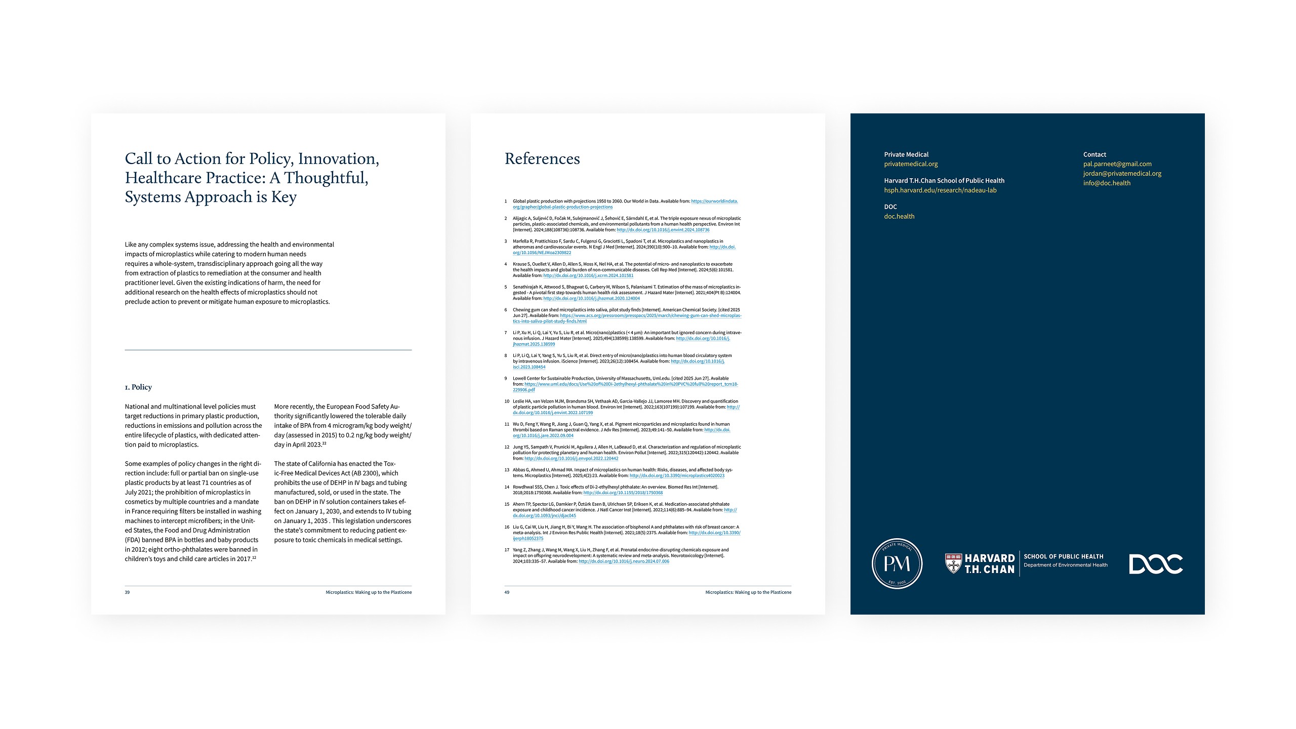 By 2050, researchers forecast that we will have discarded 12 billion metric tons of plastic waste into our environment. The whitepaper provides a comprehensive yet accessible examination of four critical areas concerning microplastic contamination. It was published by a group of scientists and experts from Private Medical, Harvard T.H.Chan School of Public Health, and DOC. As the publication designer, I was responsible for the art direction, layout, typesetting, and iconography design.
